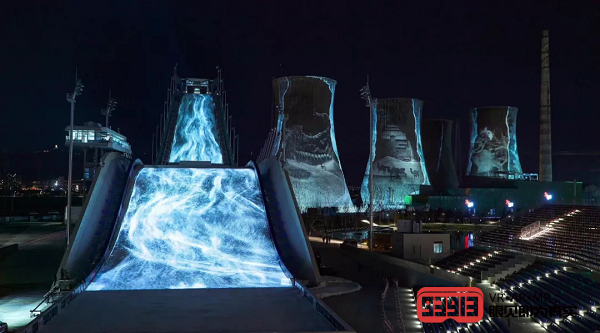 ▲首鋼園單板滑雪大跳臺(tái)燈光秀表演
