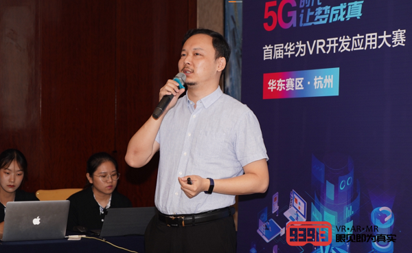 華為公司Cloud VR解決方案架構(gòu)師 李?yuàn)W森在比賽開場(chǎng)發(fā)表了主題為“雙G使能VR云聚變”的演講,李?yuàn)W森表示雙G將賦能VR,使VR行業(yè)帶來新機(jī)遇。華為云CloudVR以最低時(shí)延、最優(yōu)網(wǎng)絡(luò)、最佳終端三大利器加持VR+達(dá)到簡(jiǎn)化設(shè)備、提升體驗(yàn)、豐富內(nèi)容、保護(hù)版權(quán)的效果。