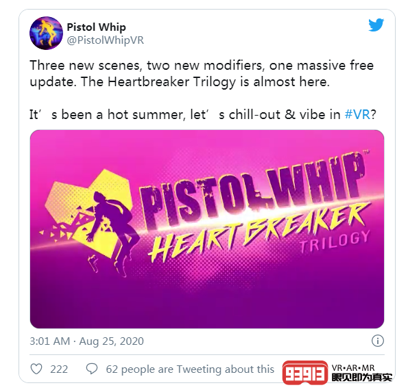 據(jù)Windows Central報(bào)道,由加拿大游戲廠商Cloudhead Games開發(fā)的VR動(dòng)作射擊游戲《Pistol Whip》在8月28日發(fā)布了免費(fèi)更新“Heartbreaker Trilogy”,并在Oculus Rift、Quest、PSVR、HTC Vive和Valve Index平臺(tái)同步進(jìn)行更新。