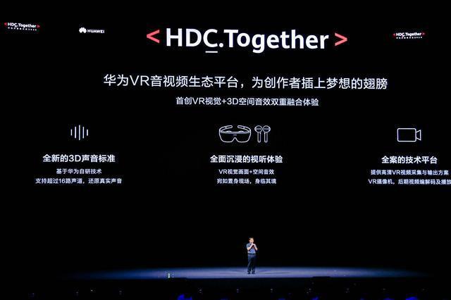 2020年9月10日,在華為開發(fā)者大會HDC2020上,華為正式發(fā)布VR音視頻生態(tài)平臺。華為消費(fèi)者業(yè)務(wù)云服務(wù)總裁張平安在主題演講中提到,華為首創(chuàng)VR視覺+3D空間音效雙重融合體驗(yàn),為創(chuàng)作者插上夢想的翅膀。