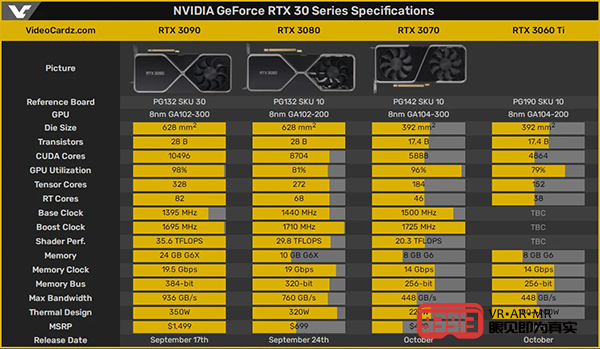 按照NVIDIA官方的說法,RTX 3070在性能上都要超過上一代旗艦卡RTX 2080 Ti。那么,我們也有理由相信,RTX 3060 Ti在部分游戲或者跑分測試項目中,可以比肩RTX 2080。