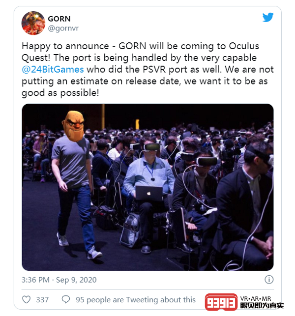 據(jù)悉,《GORN》Quest版由Free Lives旗下團(tuán)隊(duì)24Bit Games負(fù)責(zé)移植,《GORN》官方推特已證實(shí)這一消息,但該推文并未透露Quest版的具體上市日期。