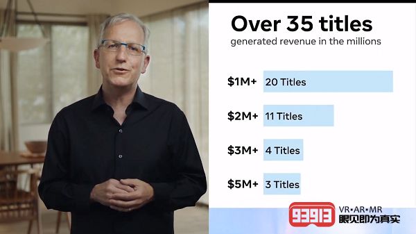 根據(jù)Facebook官方給出的數(shù)據(jù),截止目前,Quest已經(jīng)有超過35款游戲收入超過百萬美元,其中有3款游戲的收入更是達(dá)到了500萬美元。Quest已經(jīng)形成了一個良好的生態(tài),能夠不斷的吸引優(yōu)秀的內(nèi)容團(tuán)隊加入VR游戲的研發(fā),帶動消費市場的增長。