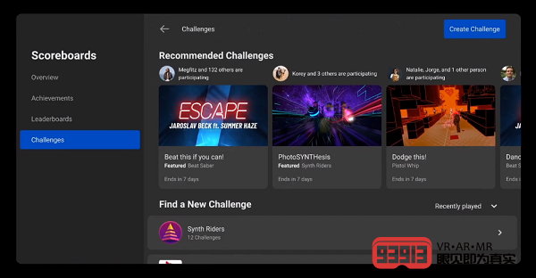 此外為了增加游戲趣味,Oculus還將新增Challenges功能,給出類似排行榜的排名,讓你可以與好友甚至是來自世界各地的游戲高手一較高下。