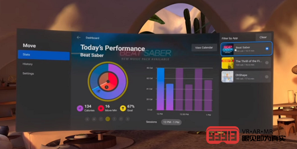 據(jù)悉,Oculus Quest及Oculus Quest 2用戶可以通過內(nèi)置健身追蹤器Oculus Move隨時查看在各款VR健身游戲中的健身記錄,并實時掌握卡路里消耗、健身時長等所有健身指標(biāo)數(shù)據(jù)。