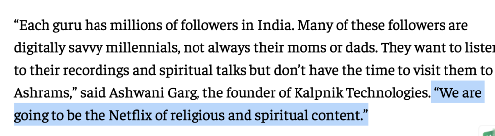 盡管用戶量與訂閱用戶數(shù)量遠(yuǎn)不及Netflix,但作為印度宗教類的最大App,它說的話并非是妄言: