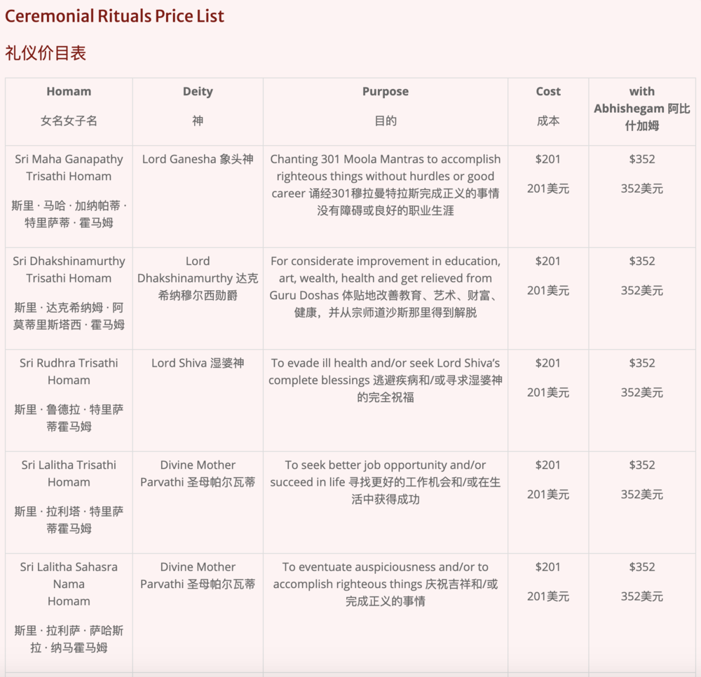 在印度一家宗教服務(wù)垂類電商報(bào)價(jià)單里,你能清晰看見印度人對于祈福業(yè)務(wù)的精細(xì)化劃分,如果加上灌頂儀式價(jià)格會(huì)更高。