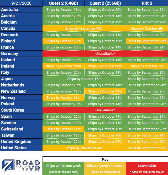 據(jù)外媒RoadtoVR報(bào)道,Oculus Quest 2將于10月13日正式發(fā)售,但是我們發(fā)現(xiàn)這款頭顯卻在加拿大地區(qū)已缺貨一個(gè)月,而在美國地區(qū)已缺貨三周。不過,好在大多數(shù)地區(qū)都計(jì)劃在發(fā)售日或發(fā)售首周內(nèi)發(fā)貨。然而隨著發(fā)售日的臨近,各大地區(qū)的發(fā)貨情況可能還會(huì)發(fā)生變化。