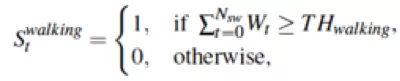 其中,S表示當(dāng)前加速度計讀數(shù)的狀態(tài),即是否為候選步子,如果為1,則表示當(dāng)前時刻檢測到候選步子。