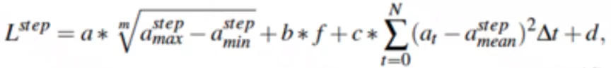 我們提出了一種基于統(tǒng)計特征的步長估計算法,其中統(tǒng)計特征包括步頻、一步內(nèi)的加速度計讀數(shù)的方差、極差的n次開方,計算公式如下所述: