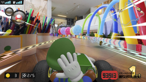 據(jù)外媒VRFocus報道,近日,任天堂公開了旗下AR賽車游戲《馬里奧卡丁車:家庭巡回賽》的最新玩法。