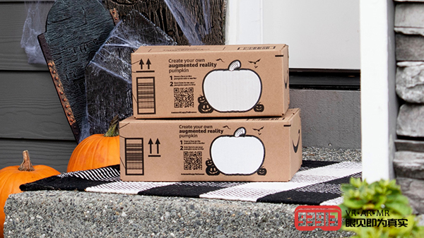 如App Store的新應(yīng)用截圖所示,不同的亞馬遜盒子將提供獨特的AR體驗。例如,其中一張截圖顯示,有人在一個預(yù)先印制的白色南瓜上畫出臉部,將其變成一個南瓜燈。然后當掃描二維碼時,南瓜就會作為一個AR物體跳出來。另一張截圖顯示,AR南瓜和蝙蝠翅膀上面是一只狗的形象。而一張則顯示,當掃描二維碼時,亞馬遜盒子變成了一輛藍色的AR小汽車。