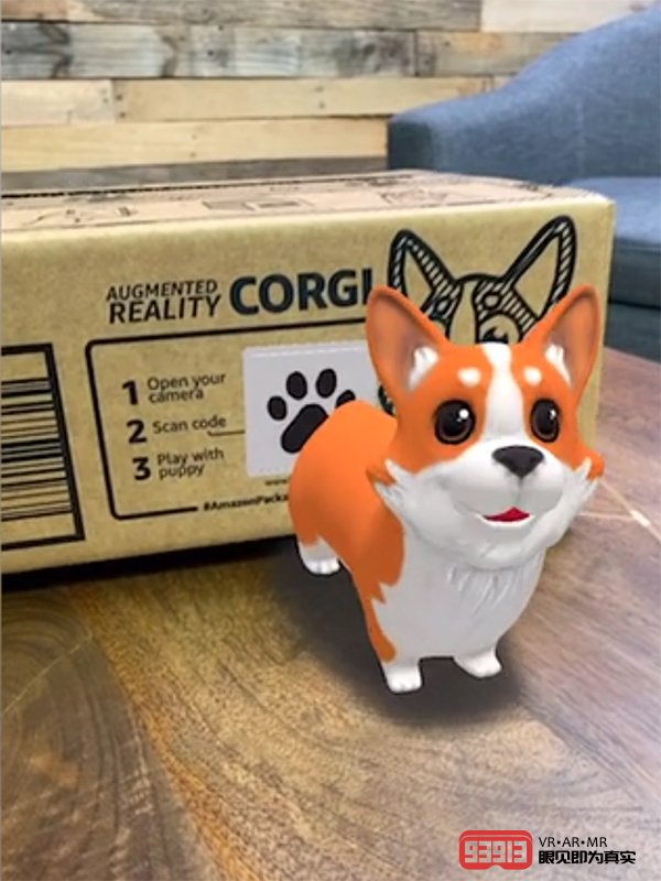 在應(yīng)用商店的配套介紹視頻中,還有其他動畫角色,包括亞馬遜微笑標志本身就是一只AR柯基犬,當掃描二維碼時,它就會俏皮地跳出來。