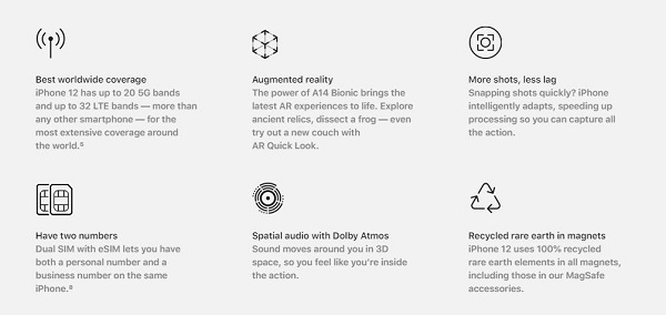 其他諸如雙卡雙待、更快的拍照速度、更好的AR體驗(yàn)等細(xì)節(jié)的改進(jìn)本次發(fā)布會雖然沒有提及,但在蘋果的官網(wǎng)上也有完整的列出來。