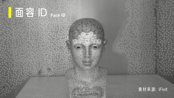 從紅外攝像機(jī)拍攝到的光斑可以看出,F(xiàn)ace ID 的結(jié)構(gòu)光傳感器通過點陣投影發(fā)射出超過 3 萬個不可見的光斑,利用扭曲建模,制作出一張準(zhǔn)確的面部深度圖,從而將 2D 的圖像轉(zhuǎn)換為帶有深度信息的 3D 圖像。受距離所限,只能進(jìn)行小范圍的 3D 繪制,用于人臉識別。