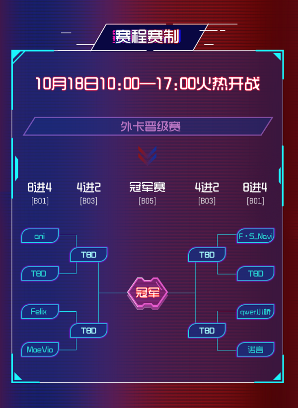 本次《節(jié)奏空間》電競大賽總決賽將分為外卡挑戰(zhàn)賽,四分之一決賽(BO1),半決賽(BO3),季軍賽(BO3)以及冠軍賽(BO5)五個部分。10名晉級選手將通過單敗淘汰賽的方式,角逐最后的冠軍!