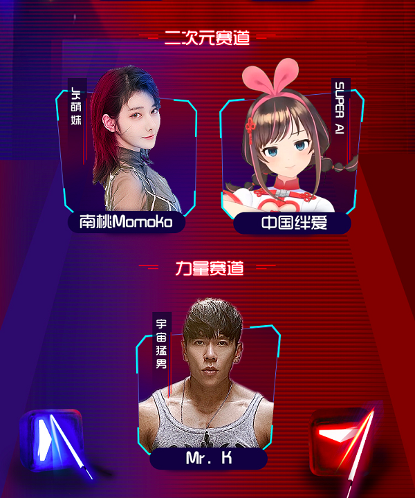 此外,總決賽還邀請了肌肉猛男Mr.K與JK萌妹南桃Momoko對線打拳,如此突破次元的組合在線“肉搏”,真是讓人期待不已!同時,現(xiàn)場還會有人氣虛擬偶像、節(jié)奏空間電競挑戰(zhàn)賽首席參賽選手——中國絆愛帶來神秘驚喜,屆時,將會是一場怎樣的“人機大戰(zhàn)”呢?