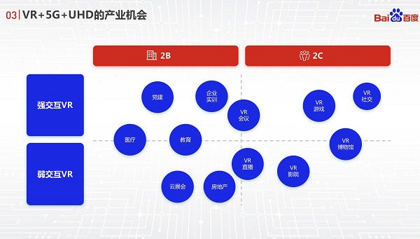 談到產(chǎn)業(yè)的發(fā)展趨勢(shì),百度虛擬現(xiàn)實(shí)業(yè)務(wù)主任架構(gòu)師柴學(xué)智認(rèn)為,1-3年內(nèi)的ToB應(yīng)用場(chǎng)景仍為教育、文化展示、工業(yè)培訓(xùn)、醫(yī)療、軍工等目前的主要商業(yè)化場(chǎng)景;而ToC方面,視頻點(diǎn)直播、游戲社交等成為重頭戲;整體來(lái)說(shuō),生態(tài)基礎(chǔ)建設(shè)與內(nèi)容規(guī)模將步入正循環(huán),內(nèi)容生態(tài)的協(xié)同重要性將持續(xù)加強(qiáng)。