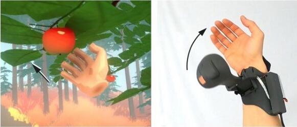 在過去數(shù)年間,VR 頭戴設備已經(jīng)有了非常大的進步。不過其搭配的控制器,有的時候還是會打破整體的沉浸感。為了改善這種情況,微軟的研發(fā)部門開發(fā)出了一套名為 Haptic PIVOT 腕戴觸感反饋方案(b 站視頻)。希望以活動的機械結(jié)構(gòu),來更逼真的模擬出物體的握持感。