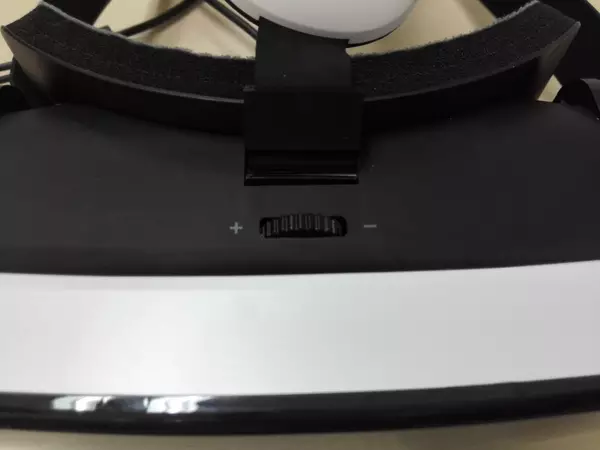 機身上側(cè)滾輪,用戶可以自行調(diào)節(jié)屏幕與透鏡距離,該功能可以適應(yīng)最高800度的近視視力和兩百度的散光。