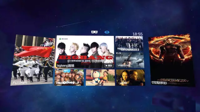 由于是小范圍推廣,不得不說下載這個應用費了點時間。打開應用首先默認進入一段VR影院模式,一段3D《復聯(lián)2》的視頻過后,期間應用會提示操作方法:上下點頭調出重新定位按鈕,向下看返回。進入主頁面可以發(fā)現(xiàn)設計與Gear vr的系統(tǒng)操作頁面類似,不過由于是內側版本,所以只有播放3D大片和觀看視頻直播的功能,還沒有播放本地視頻等功能。