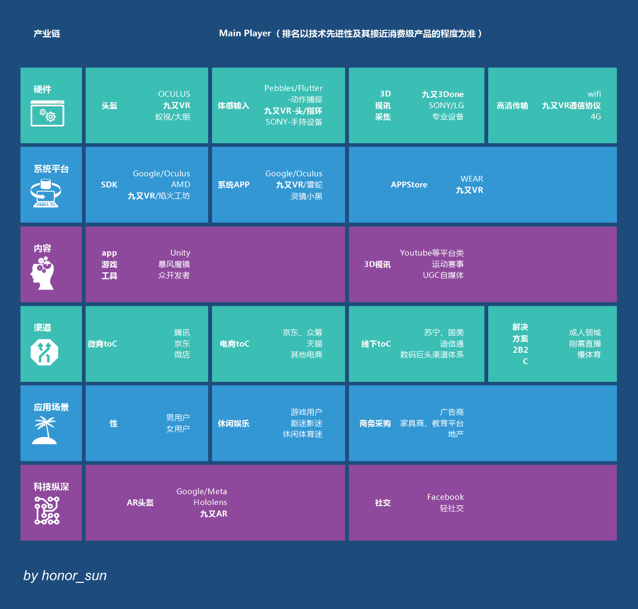 上圖無異于VR行業(yè)的尋寶圖,在與每一家VC接觸的時間里,幾乎有一半的時間要圍繞這張圖展開討論。