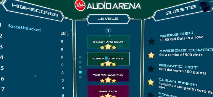 《Audio Arena》是一款單人游戲競(jìng)技體驗(yàn),游戲的玩法由音樂(lè)來(lái)生成。在游戲場(chǎng)景中敵人會(huì)蔓延在通過(guò)音樂(lè)生成的音樂(lè)節(jié)拍上,用戶需要通過(guò)變換頭部來(lái)躲避敵人。如果你足夠強(qiáng),游戲會(huì)一直持續(xù)到音樂(lè)結(jié)束,并會(huì)得到一個(gè)評(píng)分。