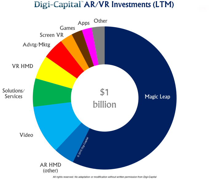 行業(yè)內(nèi)大筆資金投在增強(qiáng)/虛擬現(xiàn)實(shí)頭戴式顯示器、視頻、解決方案/服務(wù)、廣告/營(yíng)銷(xiāo)、游戲和應(yīng)用程序。生態(tài)系統(tǒng)剛開(kāi)始成型,投資團(tuán)體為增強(qiáng)/虛擬現(xiàn)實(shí)提供騰飛的動(dòng)力。