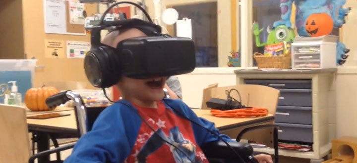 為了改善這種情況,給患病兒童增添更多的樂趣,并培養(yǎng)他們積極向上的生活態(tài)度,美國密歇根C.S. Mott Children’s Hospital兒童醫(yī)院給患者配上了Oculus Rift DK2虛擬現(xiàn)實(shí)頭顯去體驗(yàn)虛擬現(xiàn)實(shí)世界。