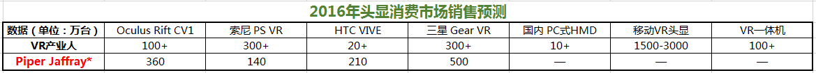 Piper Jaffray是美國的一家投行,他們最近對VR設備銷售的預測數字供各位參考。附帶一句,Piper Jaffray的預測是有名的不準。