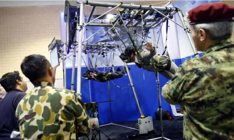 在研討會(huì)上出現(xiàn)了各種可能的方案,其中之一就是增強(qiáng)和虛擬現(xiàn)實(shí),通過這種技術(shù),可以顯示真實(shí)的環(huán)境和其他部隊(duì),但是,通過頭戴顯示設(shè)備,你可以在真實(shí)景象疊加虛擬現(xiàn)實(shí)景象,并模擬出車輛,爆炸和飛機(jī)投彈等效果。
