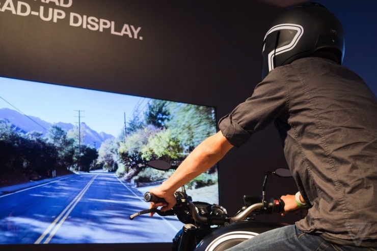 ”戴上它騎上展臺的固定摩托車,啟動(dòng)控制按鈕后,耳邊是隆隆的機(jī)車聲、噪聲、風(fēng)聲和粉絲的尖叫聲,然后前方的屏幕顯示出一條暢通的高速公路。