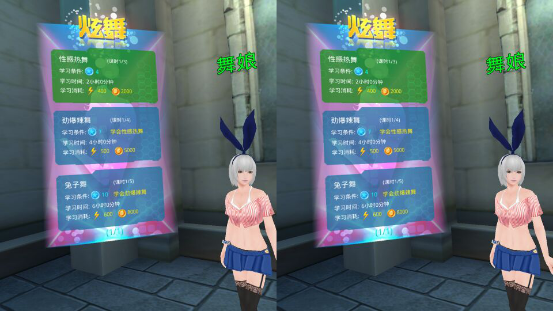 女仆養(yǎng)成分為女仆學(xué)習(xí)、女仆跟隨可見(jiàn)和更多的互動(dòng)功能,開(kāi)啟跟隨后,美美的女仆可以陪您一起逛街、拜訪好友啦;當(dāng)女仆達(dá)到一定等級(jí)后學(xué)習(xí)功能會(huì)自動(dòng)開(kāi)啟,可以去主城一層找到舞娘學(xué)習(xí)各種舞蹈,女仆升級(jí)后,會(huì)自動(dòng)開(kāi)啟相應(yīng)級(jí)別的互動(dòng)功能,精彩誘惑等您揭曉哦!