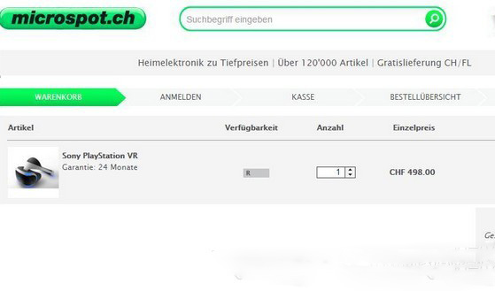 來自瑞士的電商Microspot已經(jīng)將索尼的虛擬現(xiàn)實(shí)頭顯PlayStation VR上架其官網(wǎng)進(jìn)行預(yù)購,標(biāo)價(jià)498瑞士法郎,折合約為497美元,需要到2016年6月30日才能發(fā)貨。經(jīng)相關(guān)媒體嘗試,付款前的預(yù)購流程都能順利完成,另外訂購單顯示PlayStation VR提供兩年保修期。索尼暫未對此作出評(píng)論。
