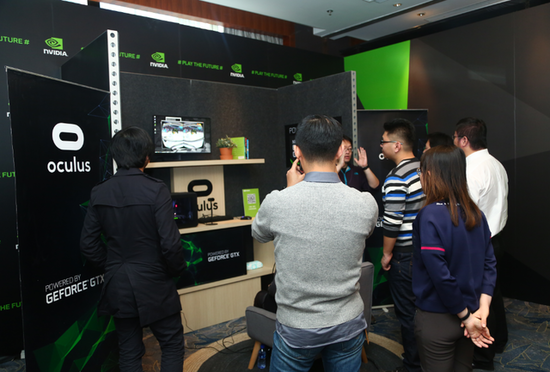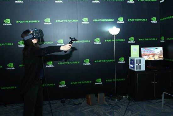 近日,視覺計算技術(shù)行業(yè)領(lǐng)袖NVIDIA攜手HTC、Oculus兩家合作伙伴,在北京嘉里大酒店帶來了最新VR(虛擬現(xiàn)實)設(shè)備的開放展示與體驗。作為當前游戲行業(yè)中最熱門、最前沿的游戲方式,與VR相關(guān)的游戲、設(shè)備都受到眾多游戲玩家的高度關(guān)注與熱烈追捧。本次體驗會上NVIDIA憑借第二代Maxwell架構(gòu)最強旗艦顯卡GeForce GTX TITAN X帶來的強勁性能,HTC和Oculus帶來的最新虛擬現(xiàn)實裝備,使得到場的編輯、業(yè)內(nèi)分析師以及慕名而來的游戲玩家,真真正正的實現(xiàn)了與VR的零距離接觸,體驗到了前所未有的游戲方式和沉浸式的游戲感受。
