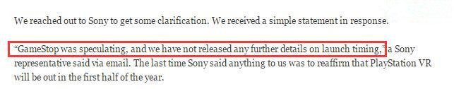 不過在Gameinformer將這個(gè)消息發(fā)布在其網(wǎng)站5個(gè)小時(shí)后,又將這個(gè)消息的報(bào)道移除了。索尼曾在2015年3月份說PlayStation VR會(huì)在今年上半年發(fā)售。