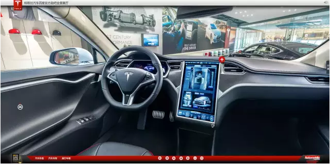 ▲特斯拉電動(dòng)汽車展廳及內(nèi)設(shè)全景交互展示