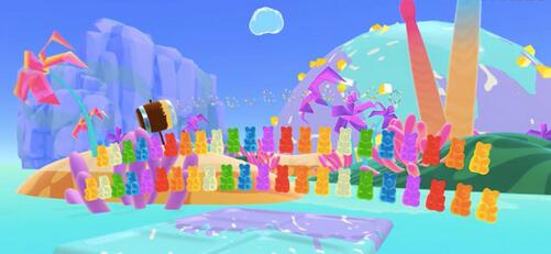 如果無法在城區(qū)建造趣味盎然的游樂場(chǎng),那該選擇什么地點(diǎn)呢?選擇之一就是虛擬現(xiàn)實(shí)空間。至少,George Michael Brower創(chuàng)造的虛擬現(xiàn)實(shí)音 樂游樂場(chǎng)體驗(yàn)《Playthings: Musical VR Playground》讓我們看到了一絲希望。在體驗(yàn)中,一切都是瘋狂的、色彩斑斕的,熱狗不受引力作用,漂浮在半空中。鼓形似小熊軟糖,由果凍塑模而 成。事實(shí)上,所有的東西,包括熱狗都可以是當(dāng)做鼓來敲打。你可以使用手持控制器敲打這些樂器。為什么不呢?你制造出來的喧鬧不會(huì)影響到任何人。