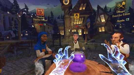 這是一款能支持5到8人的多人聯(lián)機(jī)社交游戲,簡單說就是我們平時(shí)玩的“狼人游戲”,只不 過這次是大家通過VR設(shè)備,虛擬的“圍坐在一起”,通過交流個(gè)一系列規(guī)則來揪出誰是隱藏在人群中的“狼人”。玩家們的卡通形象也會做出各種細(xì)微的表情,也 會時(shí)不時(shí)交頭接耳,營造真實(shí)的游戲場景。玩家既可以和朋友一起聯(lián)機(jī),也可以在線快速匹配。