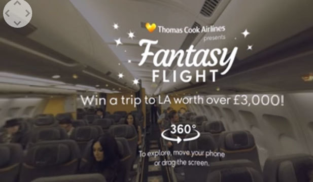 Catch Digital設計的項目能讓顧客360°經歷Thomas Cook Airlines的飛行體驗。體驗者會被傳送到Thomas Cook飛機的駕駛艙內,然后觀看攝于經濟艙和頭等艙內的視頻。顧客還可以從視頻中找到線索,將問題答案上傳到microsite網站上,就有機會贏取價 值3000英鎊的洛杉磯之旅。