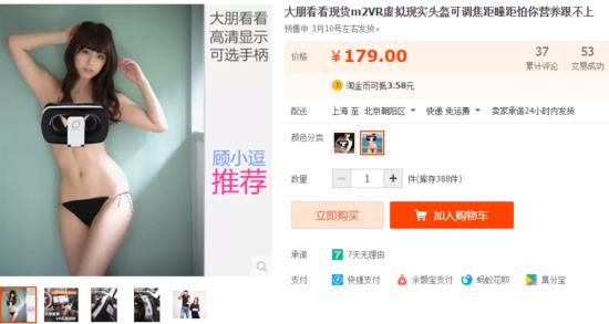 淘寶賣家構(gòu)建的虛擬世界里沒(méi)有森林和大海,只有大腿林立,大波洶涌。配合VR眼鏡“解放右手”的功能,美國(guó)的色情網(wǎng)站Pornhub還推出了VR頻道。一名試用者評(píng)價(jià)說(shuō):“雖然可能感覺不到,但看上去的確身臨其境??墒怯捎谶吘壸冃?,女主角可能看上去像個(gè)巨人。我不太好這口兒,不過(guò)應(yīng)該有人喜歡跟一個(gè)5米高的女人來(lái)一發(fā)。”