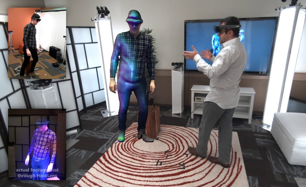 去年六月微軟展示了他們的HoloLens技術(shù),從實(shí)況錄像中創(chuàng)建了全息圖像。現(xiàn)在他們已經(jīng)把它投入實(shí)踐且正式命名為Holoportation。它使用多個(gè)3D相機(jī)從各個(gè)角度拍攝對(duì)象,創(chuàng)建一個(gè)“時(shí)間上一致的模型”,可以模擬與他人共處一室的感覺(jué)。在一個(gè)TED演講中,Alex Kipman以火星為背景,用它來(lái)和一個(gè)同事進(jìn)行虛擬面談,但微軟研究院的這個(gè)實(shí)驗(yàn)室demo更貼合實(shí)際。只要你戴上其中一臺(tái)這些3000美元的增強(qiáng)現(xiàn)實(shí)頭顯就行。