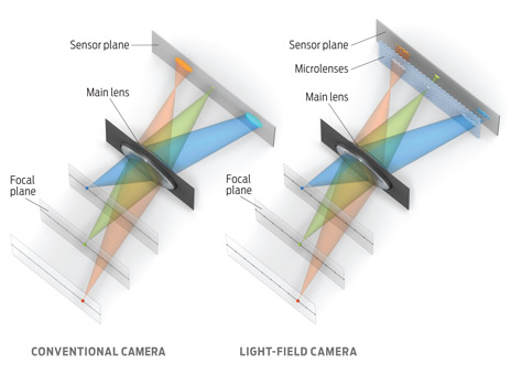 一個(gè)光場(chǎng)快照可以在圖片獲取后給照片進(jìn)行聚焦、曝光、甚至調(diào)整景深。 它不僅僅記錄落在每個(gè)感光單元所有光線的總和, 光場(chǎng)相機(jī)還旨在測(cè)定每個(gè)進(jìn)入的光線強(qiáng)度和方向。有了這些信息, 您就可以生成不只是一個(gè), 而是每一個(gè)在那一刻進(jìn)入相機(jī)視野的可能的圖象。例如,攝影師常常會(huì)調(diào)整相機(jī)的鏡頭,以便對(duì)面部進(jìn)行聚焦,刻意模糊背景。也有人想要得到模糊的面部,背景要十分清晰。有了光場(chǎng)攝影,同一張照片,你可以獲得任何效果。