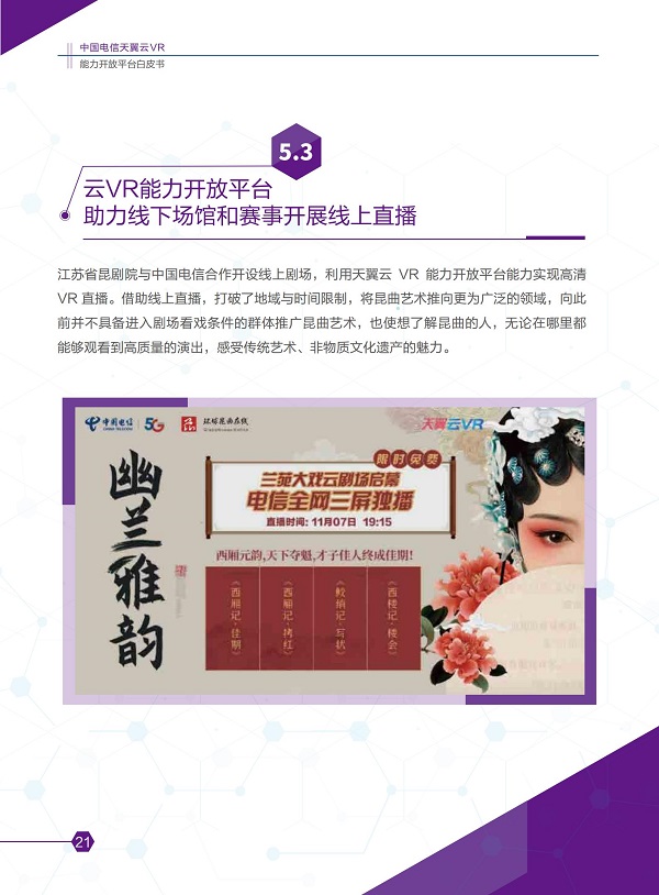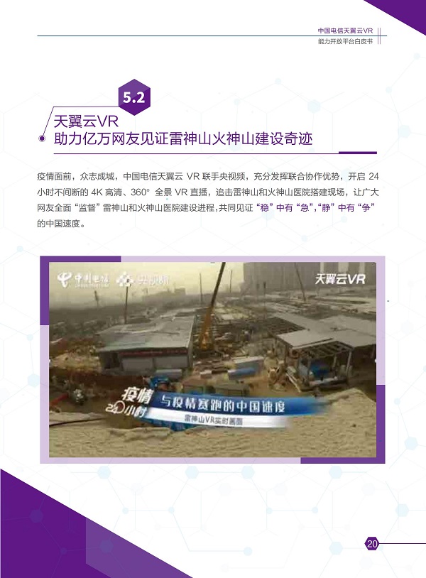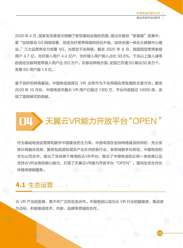 2020年11月8日,在主題為「預見·5G應用新生態(tài)」的中國電信5G+云VR論壇上,「中國電信天翼云VR能力開放平臺白皮書」(2020版)正式發(fā)布。