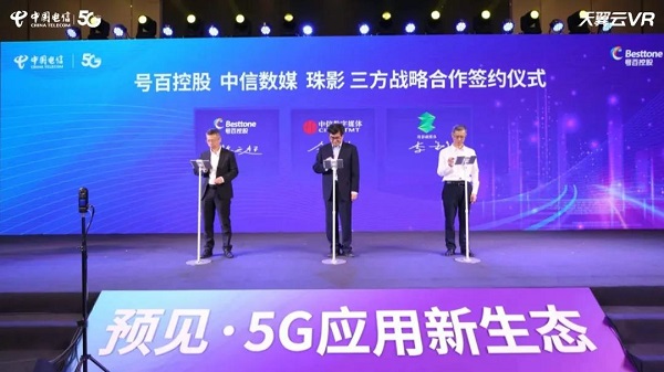 此次論壇,中國電信還聯(lián)合中信數(shù)媒、珠江電影集團(tuán)進(jìn)行了三方戰(zhàn)略合作簽約,攜手共推5G+VR影視新生態(tài)。未來,三方將持續(xù)發(fā)揮各自優(yōu)勢,在VR影