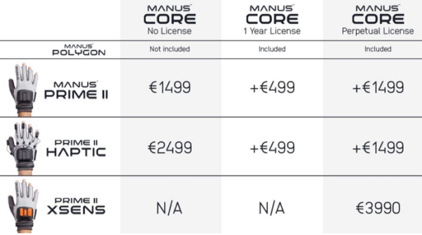首先,入門(mén)級(jí)Manus Prime II手套現(xiàn)已降至1499歐元;其次,Prime II Haptic版本售價(jià)為2499歐元;最后,包含了Manus Core軟件的Prime II XSens版本則售價(jià)3990歐元。