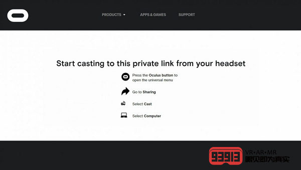 目前這一功能已正式開放,這意味著用戶已可以將頭顯視圖投屏到桌面瀏覽器窗口。在此之前用戶需要通過Chrome或Edge訪問oculus.com/cast,并登錄Facebook/Oculus賬號。登錄賬號后,玩家可按以下屏幕指引進(jìn)行操作。如下圖所示,用戶需先按住手柄上的“Oculus”按鈕,然后在彈出的通用菜單中點(diǎn)擊“共享”按鈕,并選擇“Cast”功能鍵,然后在Cast選項(xiàng)列表中勾選“電腦”。