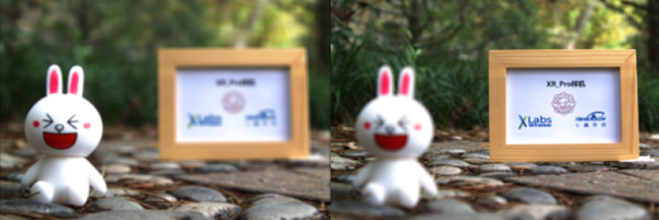 圖:當(dāng)觀察近處的玩具兔時,遠處的相框會呈現(xiàn)視覺模糊,當(dāng)觀察遠處的鏡框時,則近處的玩具兔呈現(xiàn)視覺模糊