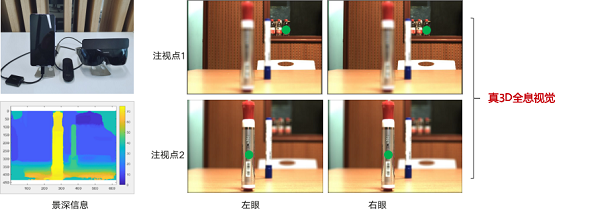 圖:眼球追蹤與光場數(shù)據(jù)結(jié)合展示不同焦平面顯示效果,實現(xiàn)真3D全息視覺