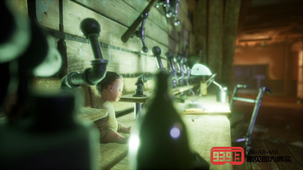 《A Wake Inn》玩法與另一款VR恐怖游戲《Last Labyrinth》類似,玩家只能坐在輪椅上通過手柄來移動(dòng)并應(yīng)對在探索酒店過程中出現(xiàn)的邪惡機(jī)械人偶,同時(shí)游戲還提供了一個(gè)可照亮黑暗環(huán)境的手電筒、一臺可收聽定制電臺的收音機(jī)以及一個(gè)可放映收集到的電影膠片的電影放映室,顯而易見這些道具都極大增強(qiáng)了這款游戲的交互性。